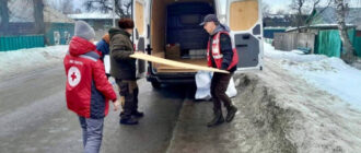 У Шосткинській громаді пошкоджені близько десяти будинків через атаку У селі Крупець люди отримують будівельні матеріали після російської атаки, 3 березня 2026 року. Новини Сум