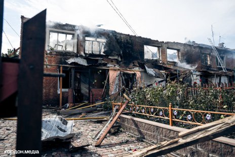 Понівечені будинки стоять із розбитими дахами та без стін. В одному із будинків досі тліє пожежа. Пошкоджені також паркани та автівки, що стояли поблизу, пише Кордон.Медіа.