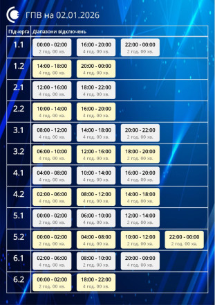 У п’ятницю, 2 січня, на Сумщині діятимуть графіки погодинних відключень відповідно до команди НЕК “Укренерго”.