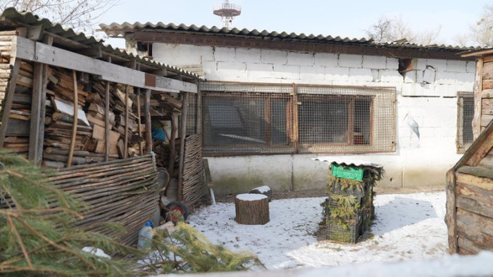 Вдень, та в теплу пору і вночі птах перебуває у вольєрі на вулиці, каже Світлана. З настанням морозу, вирішили його тимчасово перевести у приміщення.