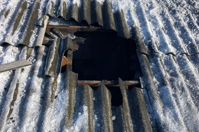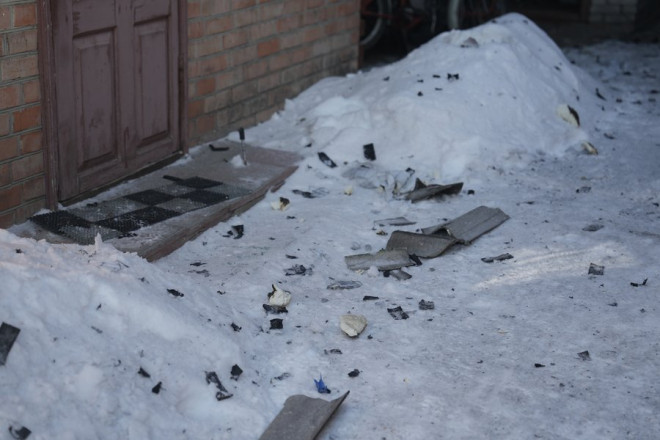 Шматки покрівлі, пошкодженої через влучаня. Суспільне Суми