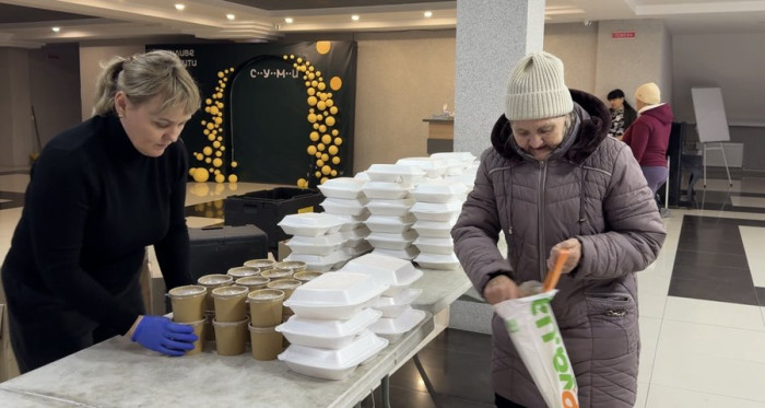 За перші півтори години роботи волонтери роздали обіди близько пів тисячі сум'янам.