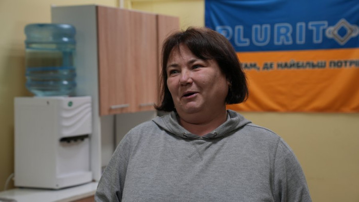 Любов Дяченко з трьома дітьми виїхала з рідного Краснопілля у 2023 році. Розповідає: з "Плурітоном" співпрацювала ще вдома, була волонтеркою, зараз у Сумах відповідає за роботу благодійної кухні. Свою допомогу пропонують мешканці гуртожитку для переселенців "Плурітону".