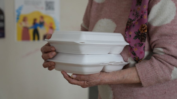Безкоштовні обіди не тільки розвозять по соціальних установах. Їх також щодня видають в обідній час у "Плурітоні". Волонтери телефонують людям вразливих категорій за списками від управління соцзахисту, які ще не приходили по допомогу.