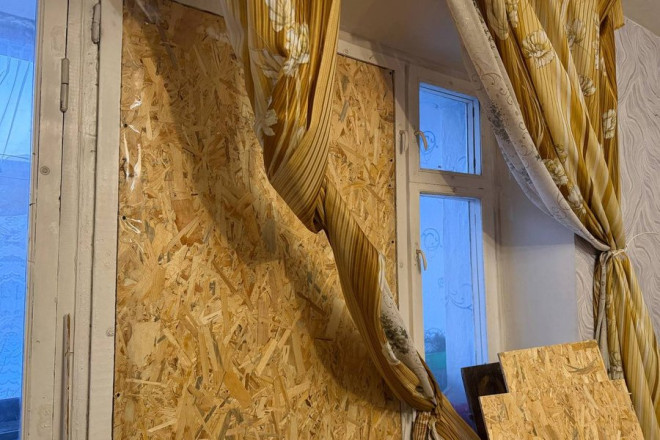 Зараз у квартирі вирвані віконні рами. Стовпчик термометра в кімнатах показував вдень 13 градусів, але позначка опускалася з кожною годиною.