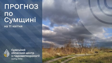 11 квітня: хмарно, вночі невеликий дощ, та мокрий сніг, місцями туман, вдень невеликий дощ. Вітер південний, 5-10 м/с. Температура повітря по області вночі заморозки 0°..-3°, вдень +4°..+9°, по м.Суми вночі заморозки 0°..-2°, вдень +6°..+8°.