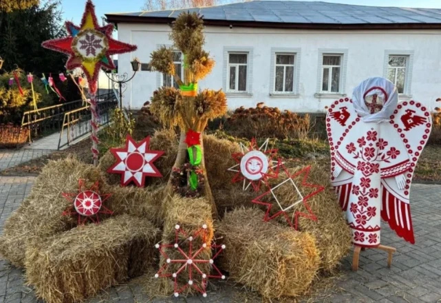 На локації розмістили тюки соломи, різдвяні зірки, дідух і фігуру янгола, оздоблену орнаментами кролевецьких рушників. Святковий простір облаштували на відкритій території музею.