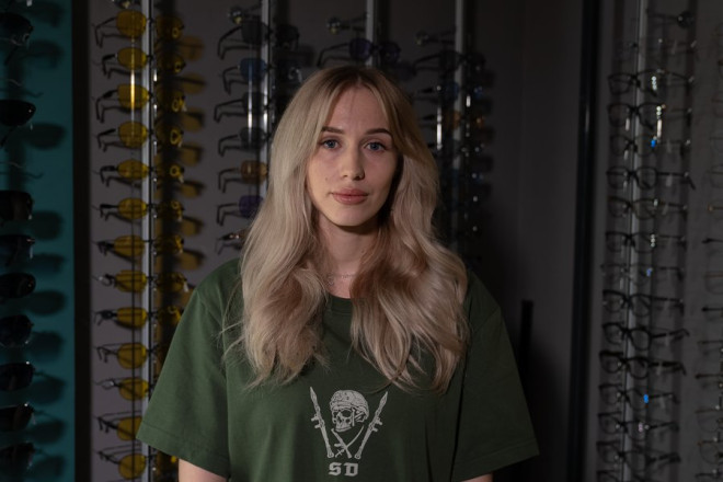 Олександра має виставкову залу, де продає комп’ютерні та сонцезахисні окуляри, а також аксесуари до них.