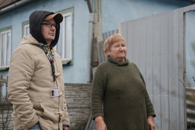 Жителька Стецьківки пані Олександра та журналіст Борис Майоров. Суспільне Суми