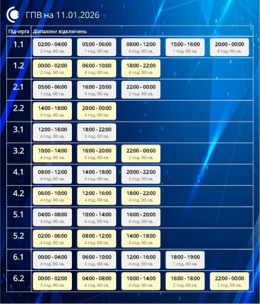 Завтра, 11 січня, діятимуть графіки погодинних відключень відповідно до обсягів, доведених командою з НЕК “Укренерго”.