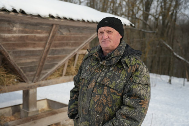 “В бункерну годівницю вміщається близько тонни корму. Можуть єгері сюди і не їздити — засипали, дозатор стоїть, висипається зерно, і звірі ходять сюди і поїдають. В господарстві мешкають козулі, кабани, олені. Лосів навіть більше стало. Якщо їхня чисельність щороку зменшувалася максимально і була останні роки в нас сім голів, то цього року ми їх облікували вже дев'ять голів. Тих, які мешкають тут, намагаємось підтримувати й охороняти”.