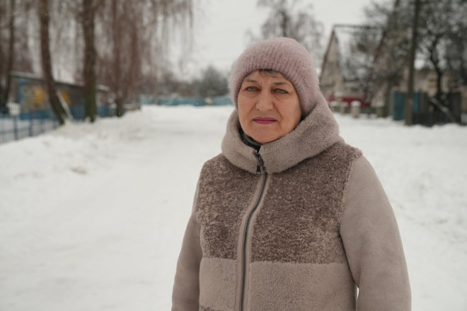 "Коли стався перший вибух, дитина злякалась, прибігла, каже: «Мамо, тікаємо до погреба». І потім ми вже побігли до погреба і були там. І одразу друге влучання. Після другого думаємо: треба тікати, І вже коли був третій вибух, то ми були на городі. Падали просто в сніг. Просто чули шум і все".