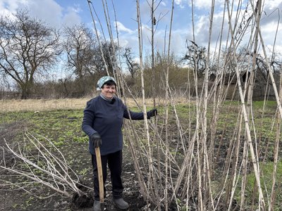 Пані Валентина показує ділянку, де земляна груша росте понад 60 років, пам’ятає цю рослину зі свого дитинства: "Ось знайшла його паростки, від якого я розсаджувала. Вони вже теж проростають. Навіть на ту сторону вже перелізло. Тут він знаходиться, ми його не прибирали. Він сам тут росте, як йому хочеться. Ще батьки його садили для викормлювання свого сільського господарства. Потім якось про його трошки призабули, але через те, що він без догляду може навіть рости на одному місці дуже довго, у нас залишивсь якийсь кущик його. І він розрісся. І одного разу я прочитала про користь його. Який він корисний і лікувальний. І захотілось мені його розсадити".