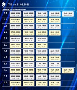 Завтра, 21 лютого, діятимуть графіки погодинних відключень відповідно до обсягів, доведених командою з НЕК “Укренерго”.