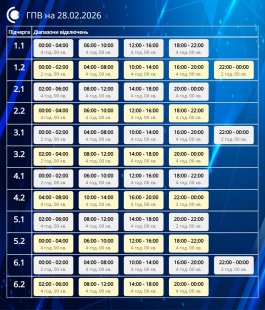 Завтра, 28 лютого, діятимуть графіки погодинних відключень відповідно до обсягів, доведених командою з НЕК “Укренерго”.