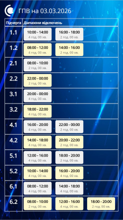 Завтра, 3 березня, діятимуть графіки погодинних відключень відповідно до обсягів, доведених командою з НЕК “Укренерго”.