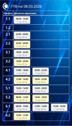 Завтра, 8 березня, діятимуть графіки погодинних відключень відповідно до обсягів, доведених командою з НЕК “Укренерго”.