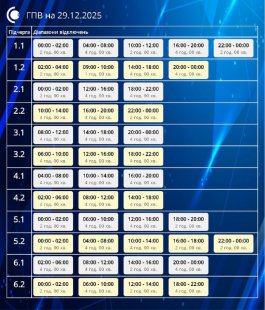Завтра, 29 грудня, діятимуть графіки погодинних відключень відповідно до обсягів, доведених командою з НЕК “Укренерго”.