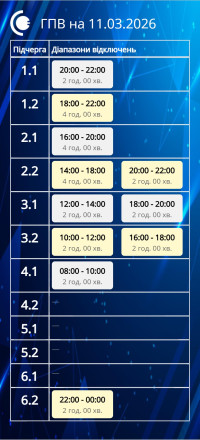У середу, 11 березня, на Сумщині діятимуть графіки погодинних відключень відповідно до команди НЕК “Укренерго”.