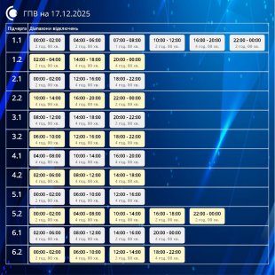 Завтра, 17 грудня, діятимуть графіки погодинних відключень відповідно до обсягів, доведених командою з НЕК “Укренерго”.