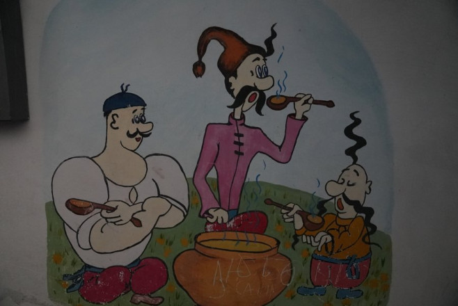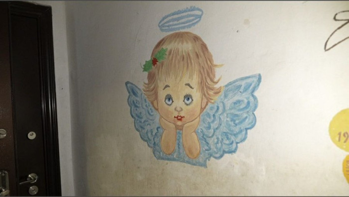 За останні кількадесят років пан Віктор розмалював стіни власного під`їзду. Малюнки, каже, присвячує сусідам. Цього янгола, наприклад, пенсіонера попросив намалювати сусід, у якого народилася дитина. Щоправда, зараз з будинку виїхали багато сусідів – через близькість Ворожби до російського кордону та загрозу обстрілів. Пан Віктор із дружиною лишається в рідному місті й, говорить, зі стресом бореться творчістю.