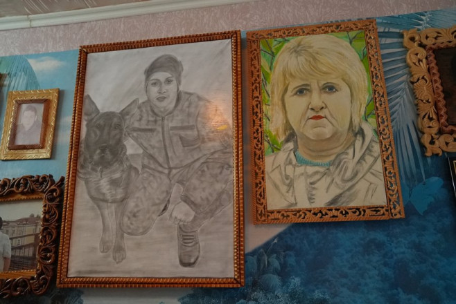 Серед артоб'єктів гільза, говорить Сергій Долуда. Також пан Віктор намалював олівцем і портрет очільника центру. Волонтери ще не знають, що скоро отримають ще один подарунок із Ворожби.