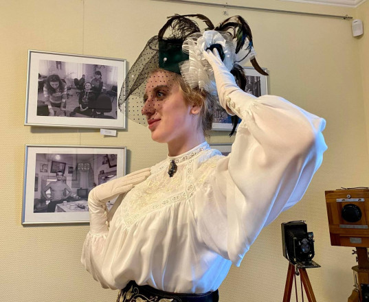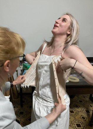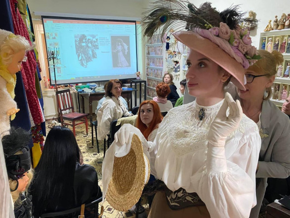 “Одягли і роздягли! Найщасливішою модель була коли з неї зняли корсет -останнє фото. Фоторепортаж з інтерактивної лекції-екскурсії Анни Коршунової «До плаття» («Під платтям»), яка відбулася 3.05.24 в музеї «Причал Одіссея» в Арт-Дворі”, – пише краєзнавець.