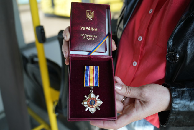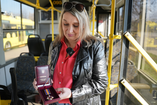 “Ми всі достойні такої нагороди, особливо в такий тяжкий час. Усі водії, кондуктори автобусів, тролейбусів. Навіть і ті, хто працює тут, на території депо, тому що щодня обстріли, щодня літають «шахеди» і на підприємстві, і по всьому місту. Я присвячую цю нагороду нашим усім працівникам. Тому що щодня вони так само, як і я, виїжджають, працюють і не зупиняють свою роботу”.