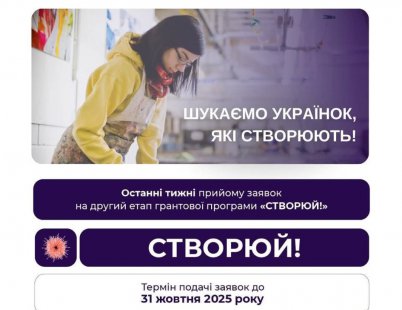 Жінки Сумщини можуть отримати до 15 тисяч доларів США на розвиток власної справи. Йдеться про програму «СТВОРЮЙ!», спрямовану на підтримку українських жінок, які розвивають бізнес у сфері виробництва або креативних індустрій із виробничою складовою.