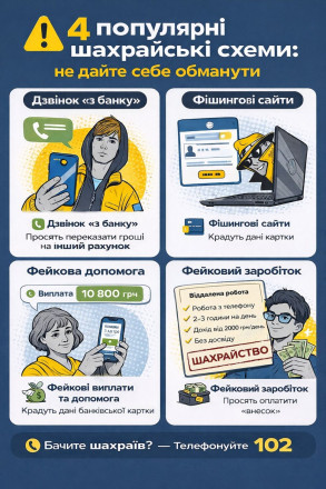 У разі підозрілих дзвінків або повідомлень негайно припиніть спілкування та зверніться до поліції за номером 102.