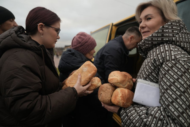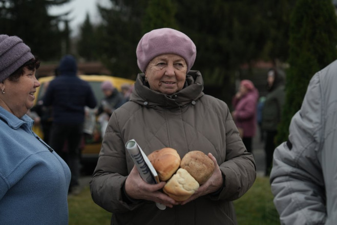 "Приїжджали вони вже до нас — давали нам хліб. Дуже.. смачний. Молодці, молодці, що підтримують нас".