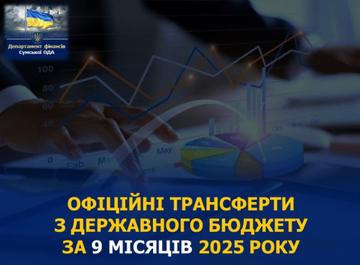 За дев’ять місяців 2025 року місцеві бюджети Сумської області отримали з державного бюджету майже 3,9 млрд гривень (96,7% від плану) офіційних трансфертів. Ці кошти спрямовані на освіту, соціальний захист, відбудову та підтримку територій, що постраждали від російської агресії.