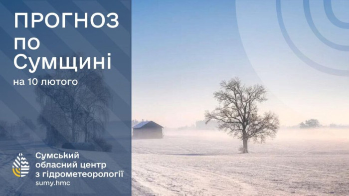 10 лютого: Мінімальна хмарність, без опадів, на дорогах ожеледиця. Вітер південно-західний , 5-10 м/с. Температура повітря по області вночі -19°..-24°, вдень -9°..-14°, по м.Суми вночі -19°..-21°, вдень -11°..-13°.