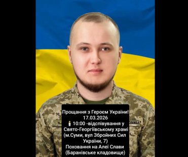 17 березня 2026 року, у вівторок, відбудеться прощання з Дмитрієм Щербиною.