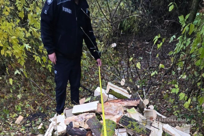 На місці події правоохоронці виявили бензопили, сокири та вже зрубані дерева. Все знайдене було вилучено.