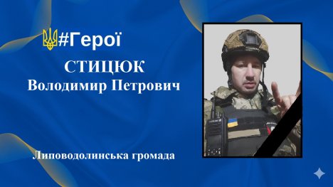 У понеділок, 16 березня, Липоводолинська громада проведе останнім земним шляхом свого Героя – Стицюка Володимира Петровича, 1988 року народження, який віддав своє життя, захищаючи Україну.