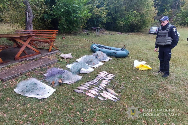 Під час огляду місця події правоохоронці вилучили знаряддя незаконного промислу — сітки, човен, улов та інші речові докази.