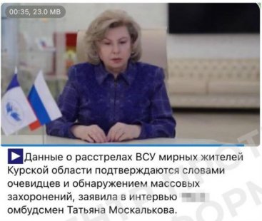 роспропаганда поширює чергову заяву російської омбудсменки тетяни москалькової про нібито «розстріли мирних жителів курської області військовими ЗСУ».