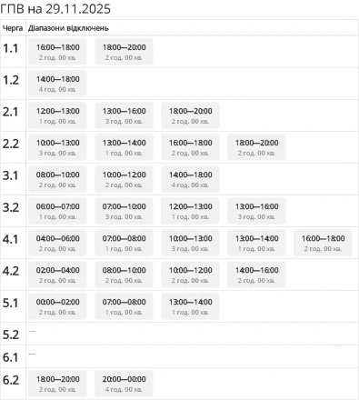 Важливо: протягом доби графіки можуть змінюватися залежно від ситуації в енергосистемі України.