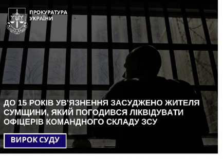 До 15 років ув’язнення засуджено жителя Сумщини, який погодився ліквідувати офіцерів командного складу ЗСУ.