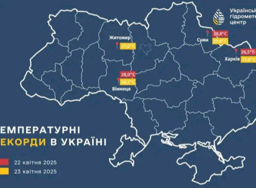 Окрім Сумщини, температурні рекорди також були зафіксовані у Харкові, Житомирі та Вінниці. Це сталося на тлі загального потепління, яке спостерігалося в Україні 22-23 квітня.