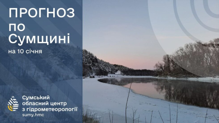 10 січня: хмарно з проясненнями, невеликий сніг, на дорогах ожеледиця. Вітер південно-західний, 7-12 м/с. Температура повітря по області вночі -6°..-12°, вдень -3°..-8°, по м.Суми вночі -7°..-9°, вдень -4°..-6°.