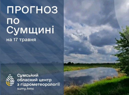 17 травня: очікується хмарна погода. Вночі істотних опадів не передбачається, проте вдень пройде помірний дощ, місцями можлива гроза. Вітер південно-східний, 7-12 м/с, місцями пориви сягатимуть 15-20 м/с. Температура повітря по області вночі коливатиметься від +8° до +13°, а вдень становитиме +16°..+21°. У Сумах вночі прогнозується +10°..+12°, вдень +18°..+20°.