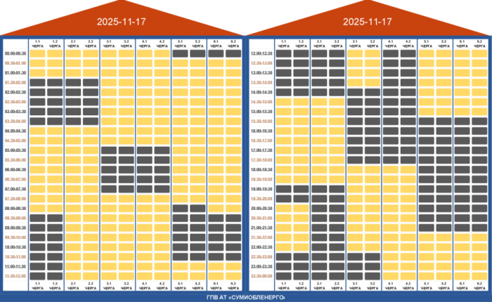 Завтра, 17 листопада, відповідно до команди НЕК “Укренерго”, діятимуть графіки погодинних відключень:
