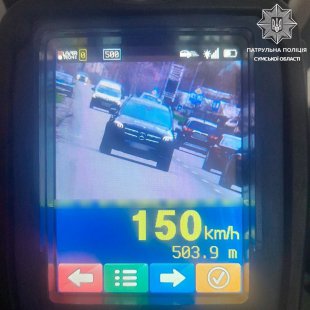 Учора на автодорозі Н 07 Київ — Суми — Юнаківка патрульні зупинили водія автомобіля Mercedes, який рухався зі швидкістю 150 км/год.