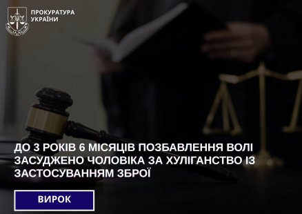 За вироком суду чоловіка визнано винним у хуліганстві, а також незаконному зберіганні зброї та боєприпасів і засуджено до 3 років 6 місяців позбавлення волі. На вирок суду він чекав за ґратами, повідомили в обласній прокуратурі.