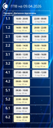 Сьогодні, 9 квітня, діятимуть графіки погодинних відключень відповідно до обсягів, доведених командою з НЕК “Укренерго”.