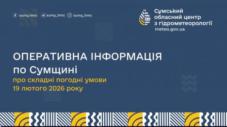 Внаслідок виходу циклону з південного заходу 19 лютого на території Сумської області очікуються складні погодні умови: