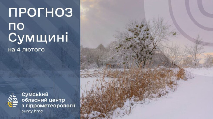 4 лютого: мінлива хмарність, без істотних опадів, вночі та вранці туман, на дорогах ожеледиця. Вітер змінних напрямків, 3-8 м/с. Температура повітря по області вночі -23°..-28°, вдень -12°..-17°, по м.Суми вночі -24°..-26°, вдень -13°..-15°.