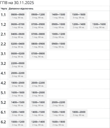 На Сумщині знову зміни в застосування ГПВ | Новини Сум 01.12.2025 НЕК “Укренерго” внесло зміни щодо застосування графіків погодинних відключень на 30 листопада. Це вже вп’яте за сьогодні. Джерело